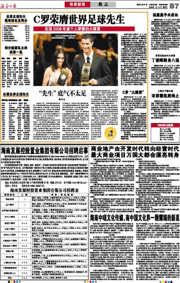 海南日报 体育新闻 015 2009-01-141 2009年01月14日 星期三