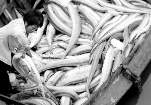| 我省海洋捕捞正迈向深海。图为在东方市八所镇新港,渔家女正在搬运从深海捕捞上来的麻鱼。 本报记者 李英挺 摄 |