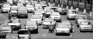 | 海口海秀东路交通拥挤。