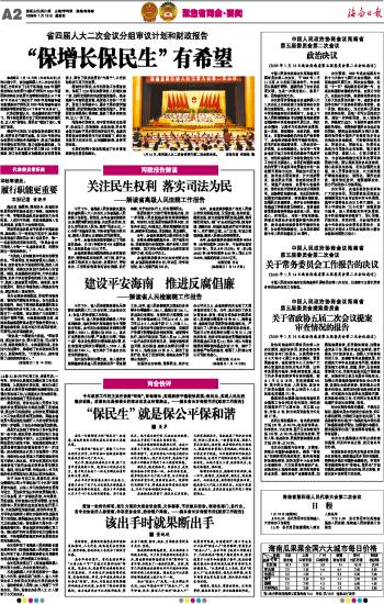 海南日报 聚焦省两会·要闻 002 2009-01-151 2009年01月15日 星期四