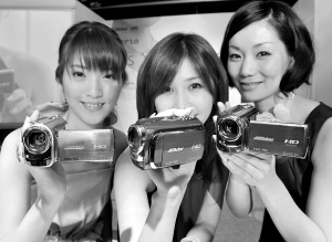 1月15日,模特展示新推出的高清数码摄像机。当日,日本JVC公司推出目前世界上最小最轻的高清数码摄像机。该款摄像机长113毫米,宽58毫米,高69毫米,仅重325克。这款摄像机将于下月投放市场。