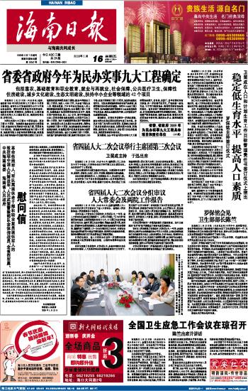 海南日报 头版 001 2009-01-161 2009年01月16日 星期五