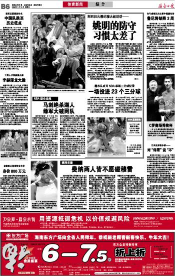 海南日报 体育新闻 014 2009-01-161 2009年01月16日 星期五