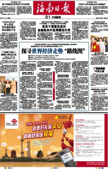 海南日报 中国新闻 009 2009-01-161 2009年01月16日 星期五