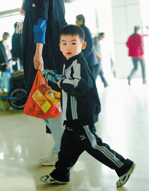 随着牛年春节的日益临近,越来越多的人开始踏上返乡路,海口各车站、港口迎来客运高峰。图为1月18日,在海口汽车南站,一名儿童随父母赶班车回家过年。 本报记者 古月 摄 (更多春运报道见A5版)