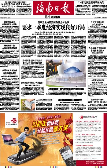 海南日报 中国新闻 009 2009-01-201 2009年01月20日 星期二