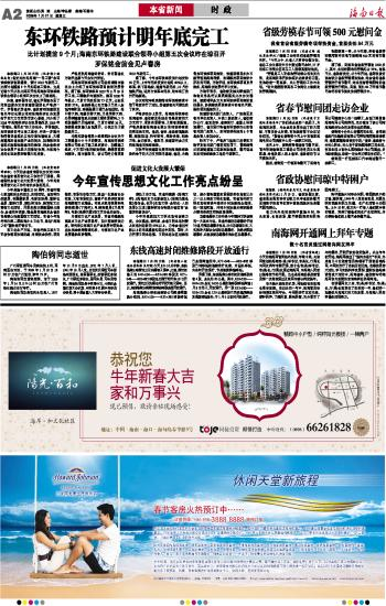 海南日报 本省新闻 002 2009-01-211 2009年01月21日 星期三