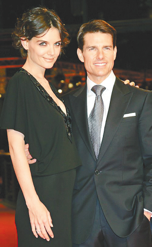 | 汤姆·克鲁斯21日携妻凯蒂·霍尔姆斯出席新片《刺杀希特勒》柏林首映式 |