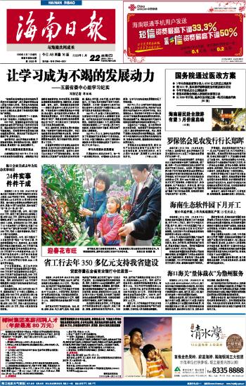 海南日报 头版 001 2009-01-221 2009年01月22日 星期四