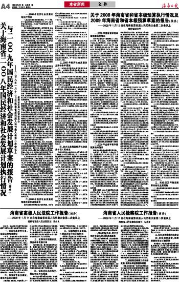 关于海南省二OO八年国民经济和社会发展计划执行情况