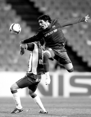 1月22日当日,在西班牙国王杯四分之一决赛首回合比赛中,巴塞罗那队客场以0:0战平西班牙人队。图为巴塞罗那队球员卡塞雷斯(上)与西班牙人队球员卡拉扬拼抢。 新华社发