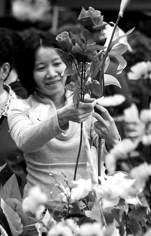 | 一月二十三日,海口广场路春节花市一片欢声笑语,海口市民正忙于挑选鲜花,高高兴兴准备过年。 本报记者 陈德雄 摄 |