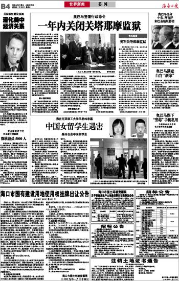 海南日报 世界新闻美 国 012 2009-01-241 2009年01月24日 星期六