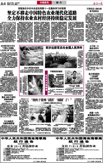 海南日报 中国新闻 004 2009-01-251 2009年01月25日 星期日