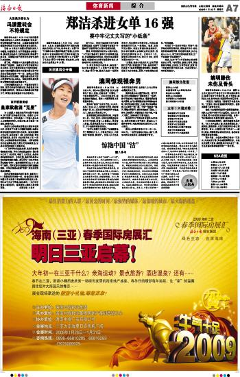 海南日报 体育新闻 007 2009-01-251 2009年01月25日 星期日