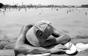 | 一名男子在澳大利亚墨尔本的海滨晒日光浴。新华社/路透