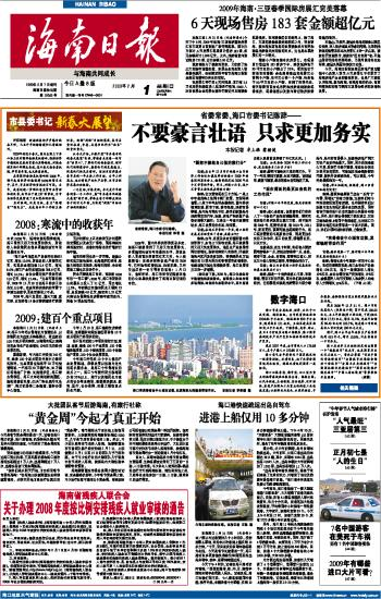 海南日报 头版 001 2009-02-011 2009年02月01日 星期日
