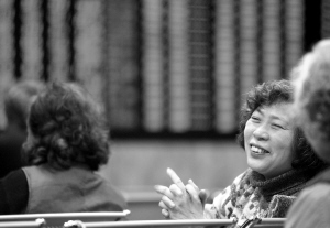 | 牛年A股三连阳,令股民信大增。图为2月4日,股民在上海一家证券营业部内谈论股市行情。 新华社发 |