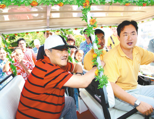 2月4日上午,在三亚休闲度假的赵本山在南山文化旅游区“悠然见南山”。 本报记者 程范淦 通讯员 陈文武 摄