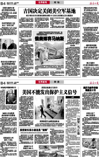 海南日报 世界新闻时 局 012 2009-02-051 2009年02月05日 星期四