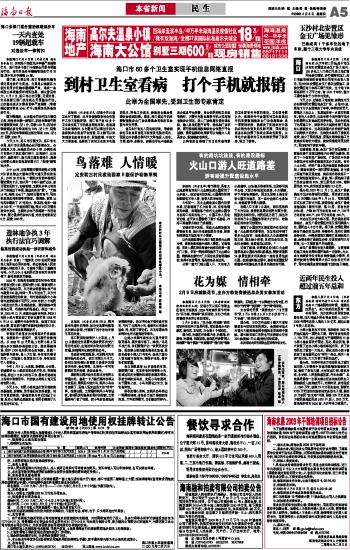 海南日报 本省新闻民 生 005 2009-02-051 2009年02月05日 星期四