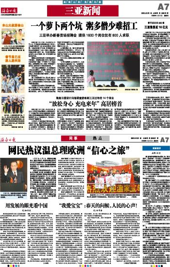 海南日报 三亚新闻 007 2009-02-051 2009年02月05日 星期四