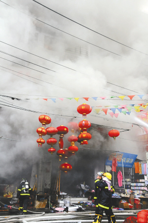 2月5日,武汉汉正街一塑料玩具和工艺品市场发生大火,目前至少造成10人受伤,其中一人伤势严重。 新华社发