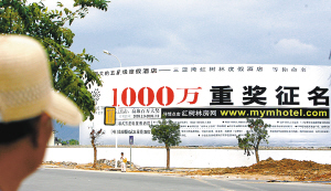 2月4日,今典集团营销出“怪招”,1000万元征集三亚湾红树林系的4家酒店名。今典集团营销副总监王红月说,此次征名主要是想吸引市场注意力,总奖额高达1000万元,但并不提供现金,中奖者所获奖励将用于冲抵“红树林”的购房款,指标可转让。但也有质疑者称,红树林酒店的总体规划还没有最后确定,通过征名的市场推广策略也显得过于俗套。 记者吴钟斌 程范淦 摄