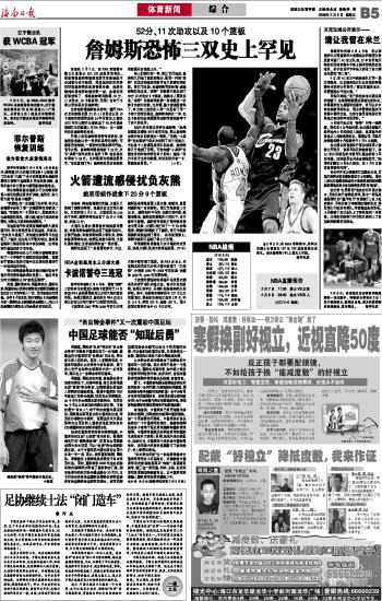 海南日报 体育新闻综 合 013 2009-02-061 2009年02月06日 星期五