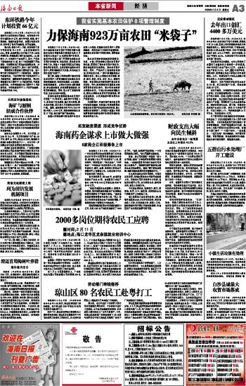 海南日报 本省新闻经 济 003 2009-02-061 2009年02月06日 星期五