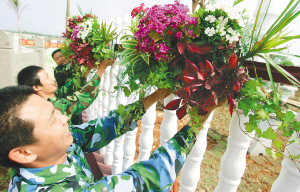 2月6日,在府城三公里处的海南花卉大世界,工人们正在用鲜花装扮“情景交融园”,为2009年府城传统的元宵换花节做准备。 本报记者 张杰 摄