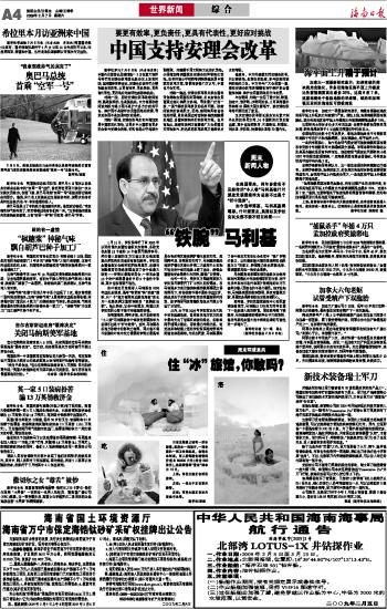 海南日报 世界新闻 004 2009-02-071 2009年02月07日 星期六