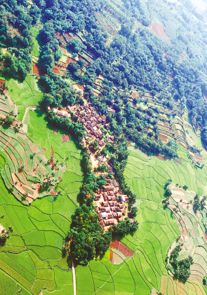 | 10年生态省建设,带来了一个绿色和谐之岛。图为空中鸟瞰绿色环绕的海南乡村民居。海南日报记者 王军 摄 |