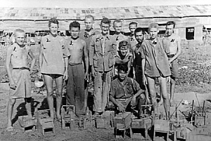| 战俘和他们自制的捕捉老鼠的笼子。 |