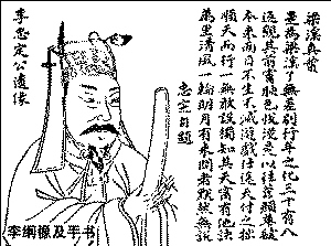 | 史籍上的李纲像和李纲手迹,里面写到的“万里清风一轮明月”应该就是他的胸怀。 |