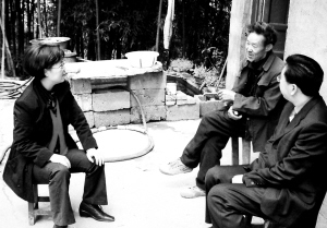 | 2006年10月,王瑛(左)在南江县杨坝镇尖山村与群众座谈,商讨致富之策。