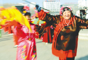 2月9日,选手在长春市文化广场参加元宵节秧歌大赛。 当日是元宵节,由长春市政府主办的“元宵节秧歌大赛”在长春市文化广场举行。数千名选手参赛,吸引众多市民围观。新华社发