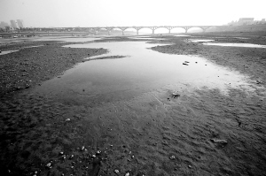 | 湘江橘子洲大桥附近河床裸露(2月9日摄)。