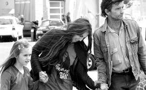 | 2月9日,在惠特尔西,一家三口手牵手悲伤地来到灾民聚集点。 新华社/法新 |