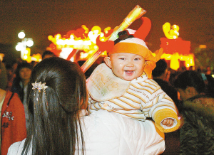 2月9日晚,海口市民涌进万绿园赏灯闹元宵。 本报记者 林萌 摄