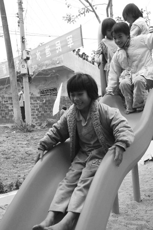 | ←海口市龙华区龙泉镇大叠村孩子们在刚修建好的滑梯上玩耍。本报记者 卓上雄 摄 |