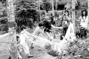 | 元宵节,各地游客在呀诺达雨林景区游玩。图为游客在荡秋千。 通讯员 陈文武 薛斌 摄 |