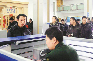 | 几名赴俄罗斯务工的农民工在满洲里边检站排队办理出境手续(2月6日摄)。据统计,2009年1月1日以来,从内蒙古满洲里边检站赴俄罗斯的农民工人数已接近1万人,他们在俄罗斯主要从事蔬菜种植、建筑、采伐等工作。