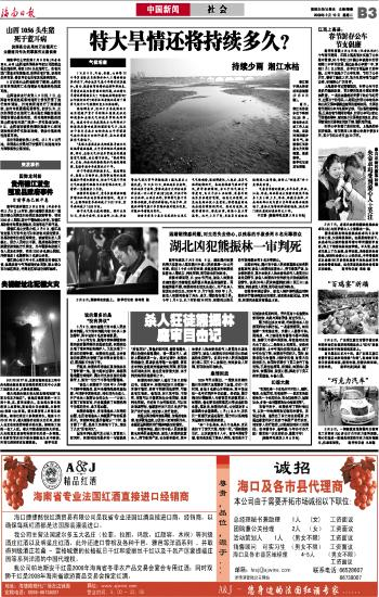 海南日报 中国新闻 011 2009-02-101 2009年02月10日 星期二