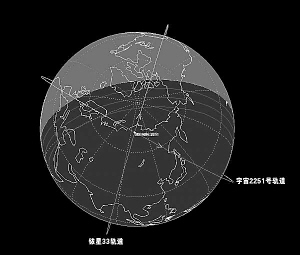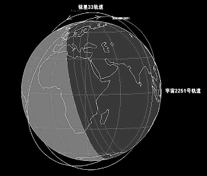 | 美俄卫星相撞轨道俯视图 |