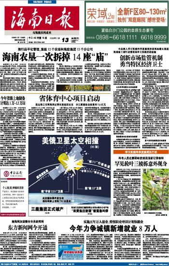 海南日报 头版 001 2009-02-131 2009年02月13日 星期五