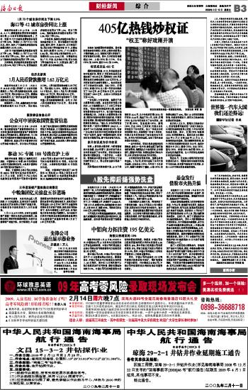 海南日报 财经新闻 011 2009-02-131 2009年02月13日 星期五