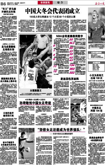 海南日报 体育新闻 014 2009-02-131 2009年02月13日 星期五