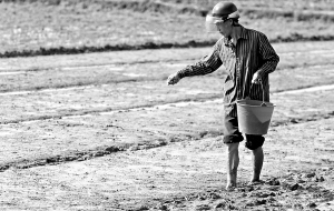 | 2月12日,临高县波莲镇美珠村,村民在制种田里播种。 本报记者 李英挺 摄 |