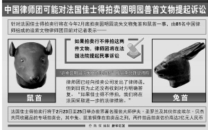 得知此消息后,我国81位律师组成了“追索圆明园流失文物律师团”。律师团通过向拍卖行和收藏人发律师函等形式尝试阻止这两件文物的拍卖,并表示如果没有收到对方回复的情况下将有可能就此事向法国法院提起诉讼。